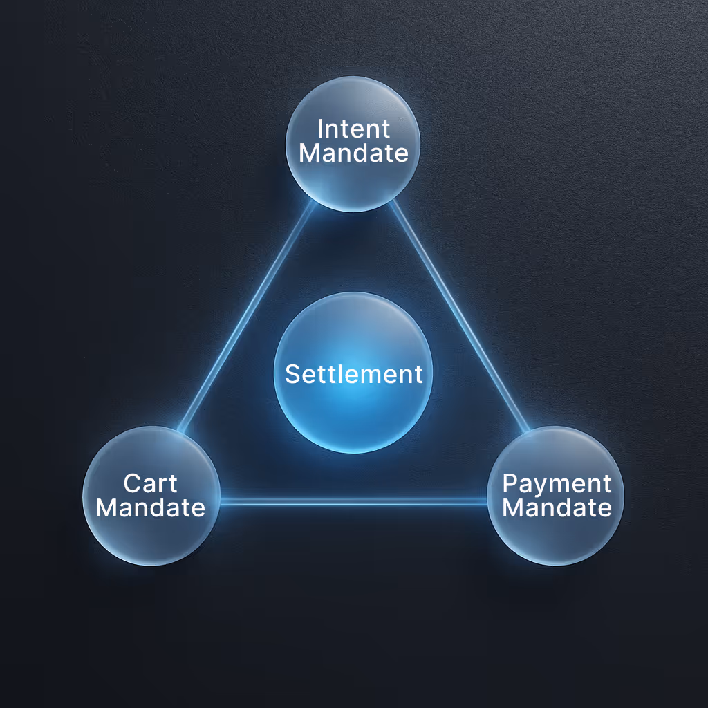 AP2 (Agent Payments Protocol) defines how AI agents transact, safely and predictably. It enforces a chain of signed mandates that map every step from user intent to final settlement.